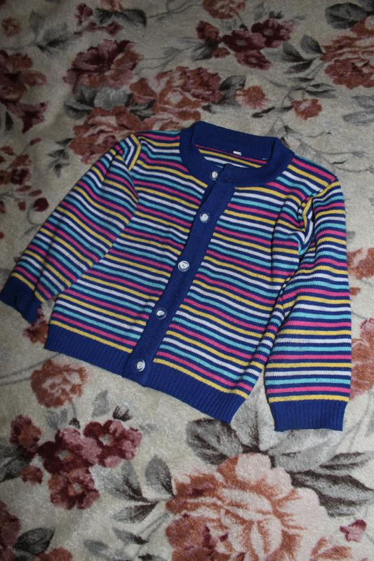 Очень теплая кофта на пуговицах для дома или сада, есть немного катышек Подойдет на 2-3 года, смотрите по замерам Замеры: Длинна рукава - 29 см Ширина в плечах - 29 см Длинна - 34 см