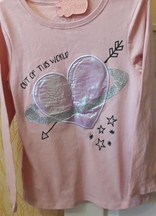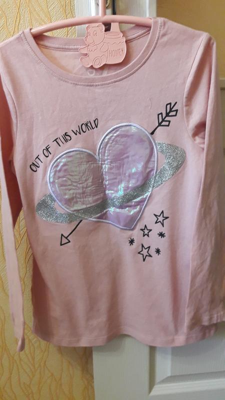 Стильный реглан девочке 7 лет ,отличное состояние,сток,оригинальный принт. Длина от плеча до низа 52см, рукав 47 см , Пог 37 см