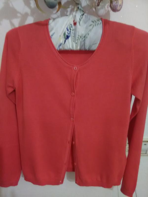 Сама ніжність) М'якенька, натуральна (100% мерсеризована бавовна) кофтинка на ґудзички. По бірці 152,спокійно підійде на XS-S Ягідно-рожевий пастельний колір, німецька якість,не носилася Довжина-49см, рукав-58см ПОГ 46