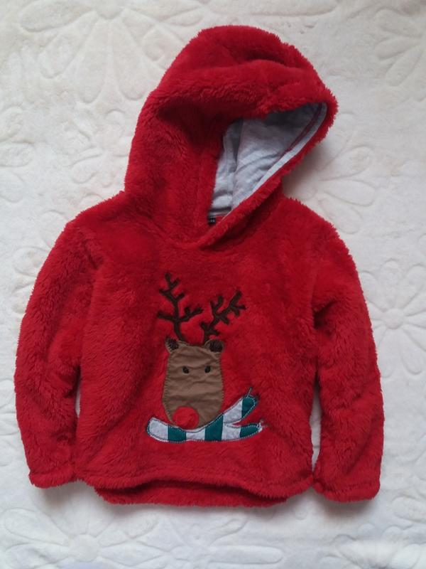 Кофта новогодняя пушистая/травка с капюшоном с оленем/мехушка с оленем