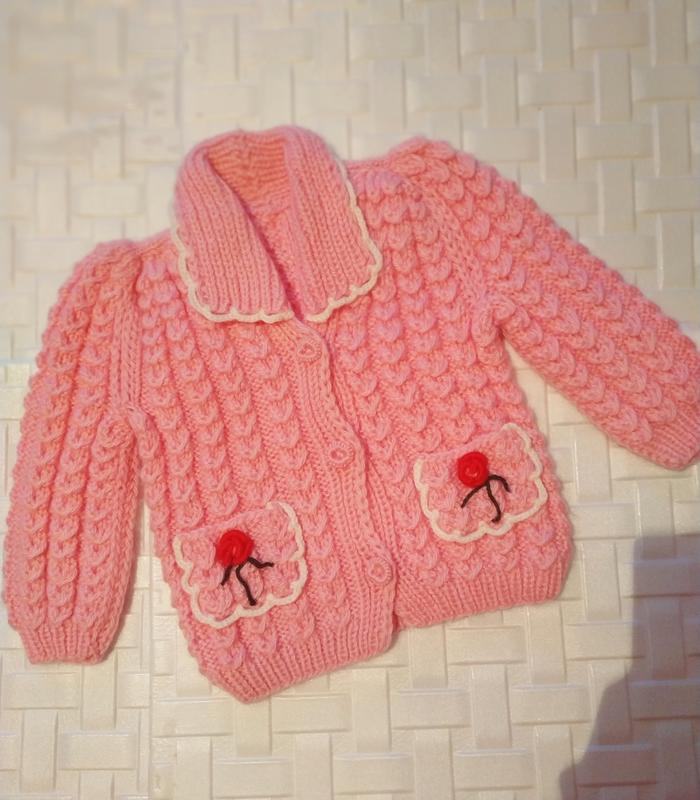 Кофточка ручной работы очень теплая. Связана с очень качественных ниток которые не линяют, не будет катышок. Малышка в такой красоте не замёрзнет Рукав повністю від горловини 41 см Довжина по спинці 40 см Ширина полуобхват грудей 34 см