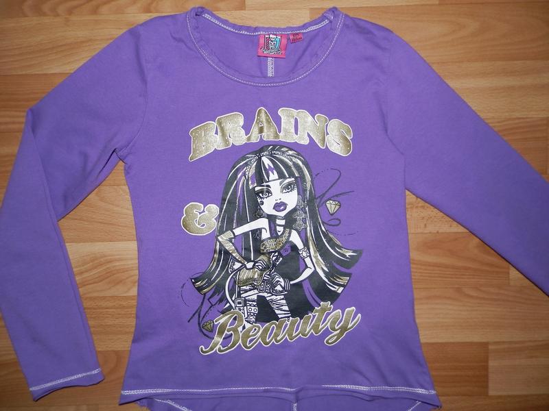 Продам реглан с Монстер Хай на р.140 б/у в отличном состоянии. Замеры: длина по переду от верхней точки плеча 46 см (спинка идёт ниже), ПОГ 35 см, длина рукава от плеча 50 см. Перешлю за счёт покупателя. Возврата нет! ...
