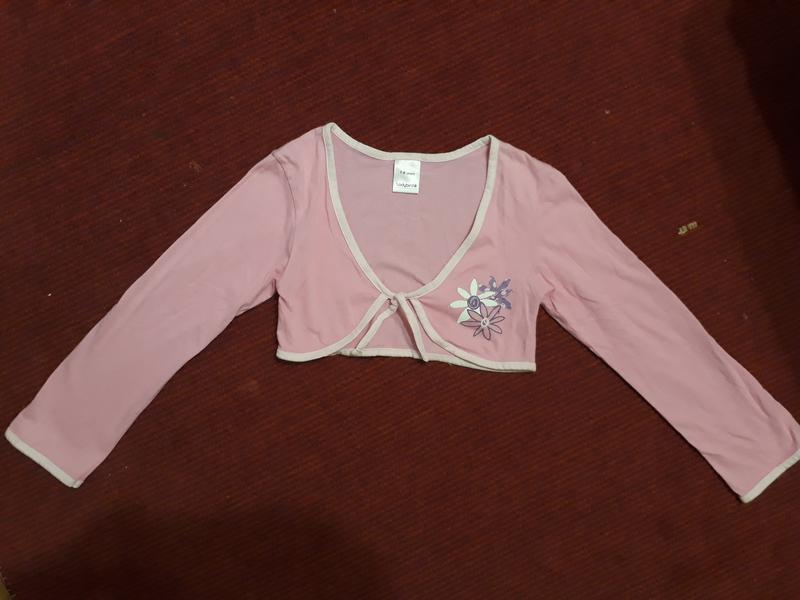 болеро на рост 128-134-140 на 7 -8лет .Нежно розового цвета. Пятен нет. длина 27см.ПОГ 34см. Ширина плеч 33см Рукав от плеча 46см.Хлопок