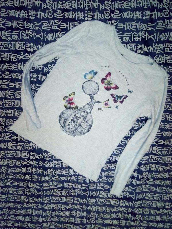 Красивый регланчик на девочку,рассчитан на 8-9лет(128-134см рост).Цвет светло серый,спереди идет рисунок ввиде флакона духов.Тонкий.Без начеса.Дефектов нет.Замеры по запросу