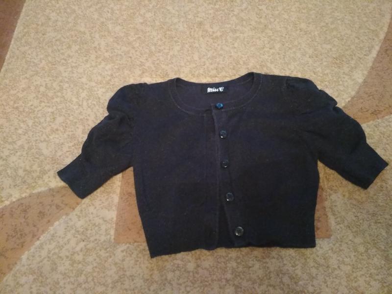 Праздничная болерушка для особых случаев на пуговице фирмы Miss E.Пойдет на ребенка рост 122см. Очень приятный на ощюпь. Вещь в идеальном состоянии. Ширина изделия под мьішками 34 см,длина изделия 30 см,длина рукава от шеи 27см. Дефектов,затяжек ,катышков нет.Делайте свой выбор обдуманно ,обмена и возврата нет.