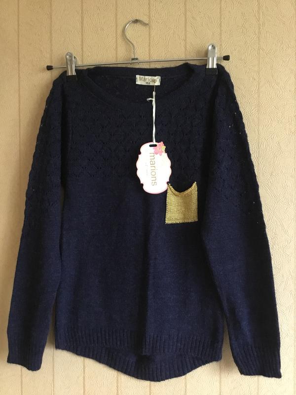Очень красивый свитер для девочки с ажурной спинкой, тёплый, 50% шерсть, фабричное качество, производства Турции, идеально подходит для осени и зимы, очень мягкий и приятный к телу ребёнка. Украшен золотистым карманчиком, что делает вещь ещё красивее. Размер есть в наличии на рост 146-152,152-158; Шикарный свитер, новый с биркой, цена снижена, стоил 550. Кому надо дам замеры.Держит форму в носке, не вытягивается и не кашлатится.
