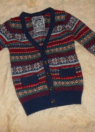 Фирменная кофта на рост 116. Красивая, тёплая. Вязанный трикотаж высокого качества, средней плотности вязка. Носили немного в школу. На худенькую девочку.Цена 110грн