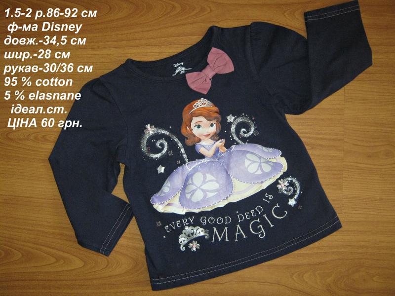 1.5-2 р.86-92 см ф-ма Disney довж.-34,5 см шир.-28 см рукав-30/36 см 95 % cotton 5 % elasnane ідеал.ст. ЦІНА 70 грн