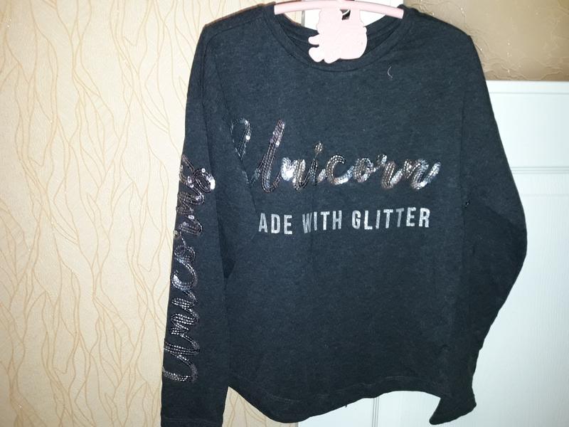 Стильный свитшот девочке 8-9 лет по бирке, принт с пайетками.Очень классный в реальности,отличное состояние