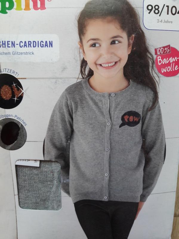 Серый кардиган, с латками на локтях. Очень стильно смотрится на маленькой моднице. На возраст 2-4 года. Сток из Германии. Все вещи новые. При покупке нескольких вещей скидка