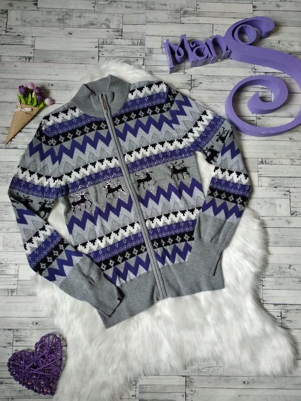 Кофта Deloras для дівчинки сірого кольору із зображенням оленів зі стразами Стан: новий Виробник: Deloras Розмір: 158 Колір: чорний, сірий, білий, фіолетовий Склад: 100% бавовна Виміри: Напівобхват грудей: 40 см Напівобхват талії: 39 см Довжина: 59 см Довжина рукава: 60 см Ширина по плічках: 37 см
