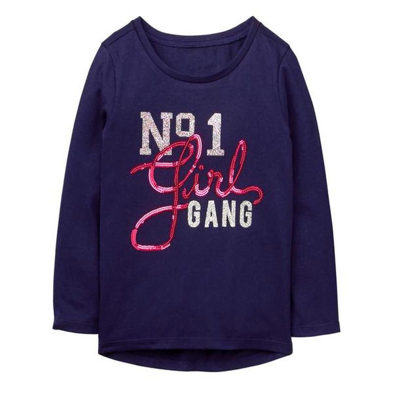 Хорошенький регланчик с надписью из пайеток от американской фирмы Gymboree. качество этой детской одежды всегда на высоте, хватит носить не одному ребенку. Сзади удлиненный. Длинный рукав. Материал - 60% хлопок / 40% полиэфирный трикотаж S(5-6) - длина 43см (сзади длиннее), по груди 33см, рукав от плеча 40см, по внутр. шву 30,5см