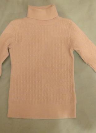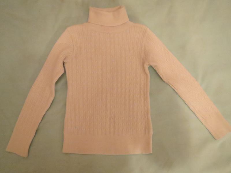 Хороший и красивый гольфик-свитерок на девочку. Отличный вариант в школу. Есть два пятнышка от стирального порошка, на фото показала. Локотки сероватого цвета. Размер 128-134. Замеры: длина 43см рукав 44см ПОГ 31см Цвет белый.