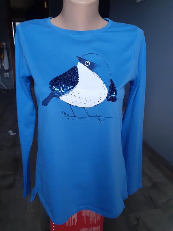 Лёгкая хлопковая кофточка с чудной птичкой.Замеры: длинна 60, ширина под мышками 44, плечи 35, длинна рукава от плеча 62