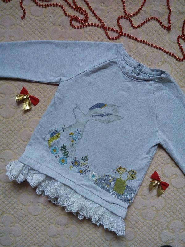 Модный и стильный реглан с зайцем для девочки 4-5 лет, в идеальном состоянии. Замеры: длина - 45 см, ПОТ - 33 см, рукав - 37 см.