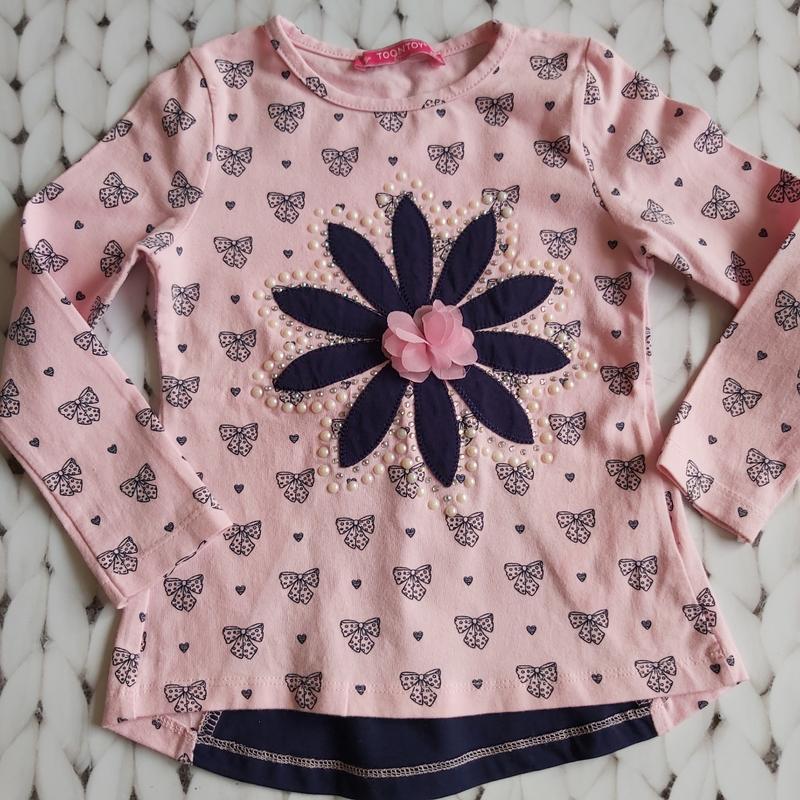 На 2-3 роки. Розмір 98. Довжина спереду 38см,взаді 41см. Довжина рукава 34,5см, обхват у грудях 55см.