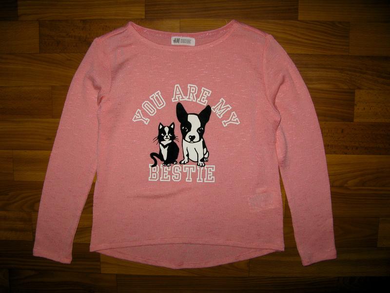 легкий свитер H&M на 9-10 лет (134-140). 55% ПЭ, 43% вискоза. Рисунок бархатистый. Дл от пл- 47/52 см, плечо-7 см, рукав от пл-49 см, ПОГ-40 см. Состояние отличное