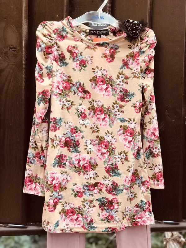 Нежная,нарядная туника с эполетом на плече .Трикотаж тонкий ,легкий.Размеры 116-158, наличие уточняйте