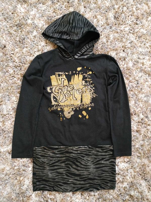 Стильна туніка-плаття. Добре тягнеться. (якісний тоненький трикотаж).Бірка відсутня.Довжина 63см, під ручками 37см, плече 9см, рукав 46,5см