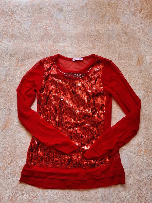 Продам красную, нарядную, кофточку-сетку с паетками одевалась пару раз, состояние идеальное на р.146-152-158