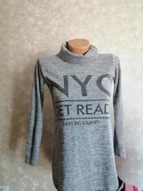 Суперовий светр-туніка для дівчинки. Трикотаж м'який, приємний на дотик і відмінний комфорт. Купувала для доньки, але підлітки як підлітки. Рік обмовляла і тепер лежить у шафі. Річ чудова. Ззаду трохи довше, ніж попереду. Заміри і додаткові фото вишлю за запитом.
