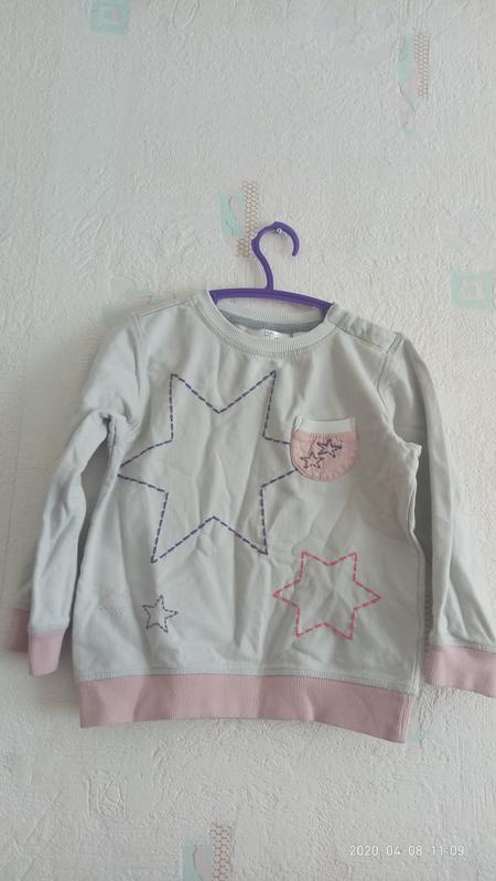 Красивый хлопковый джемпер . На последнем фото дефект - 2 маленьких пятнышках, а так все в идеале. Длина 41 см, ширина 34 см, плечи 27 см, рукав от плеча 35 см.