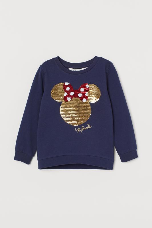 2- 3 3 - 4 4 - 6 6 - 8 8 - 10 H&M фирменный новый свитшот кофта батник с пайетками перевертышами Минни Маус I'M INTERACTIVE Свитшот из мягкого футера с принтом. Длинный рукав, рельефная трикотажная резинка по горловине, низу рукавов и нижнему краю. Мягкая изнанка с начесом. Состав - Хлопок 100 % Цвет - темно - синий / Минни Маус Цена сайта 429 грн наша же всего 375 !!! Замеры 2 - 3 г 98 см (паетки нашивные не перевертыш) рукав - 33 см рукав с плечиком - 39,5 см длинна по спинке - 39,5 см грудь п/о - 31 см плечи - 27 см Замеры 3 - 4 л 104 см рукав - 36 см рукав с плечиком - 41,5 см длинна по спинке - 41 см грудь п/о - 32,5 см плечи - 26,5 см Замеры 4 - 6 л 116 см рукав - 41,5 см рукав с плечиком - 48 см длинна по спинке - 45 см грудь п/о - 35 см плечи - 29 см Замеры 6 - 8 л 128 см рукав - 46,5 см рукав с плечиком - 53 см длинна по спинке - 48,5 см грудь п/о - 37 см плечи - 31,5 см Замеры 8 - 10 л 140 см рукав - 53 см рукав с плечиком - 60,5 см длинна по спинке - 52 см грудь п/о - 39,5 см плечи - 32 см Пересылаю укр и новой почтами самовывоз в Киеве Обмен или возврат не предусмотрен Смотрите все объявления что бы не платить за пересылку дважды