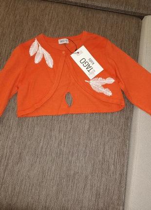 Болеро новое,нарядное,фирменние,цвет морковний,очень красивий,размер 8-9лет.Цена-220грн