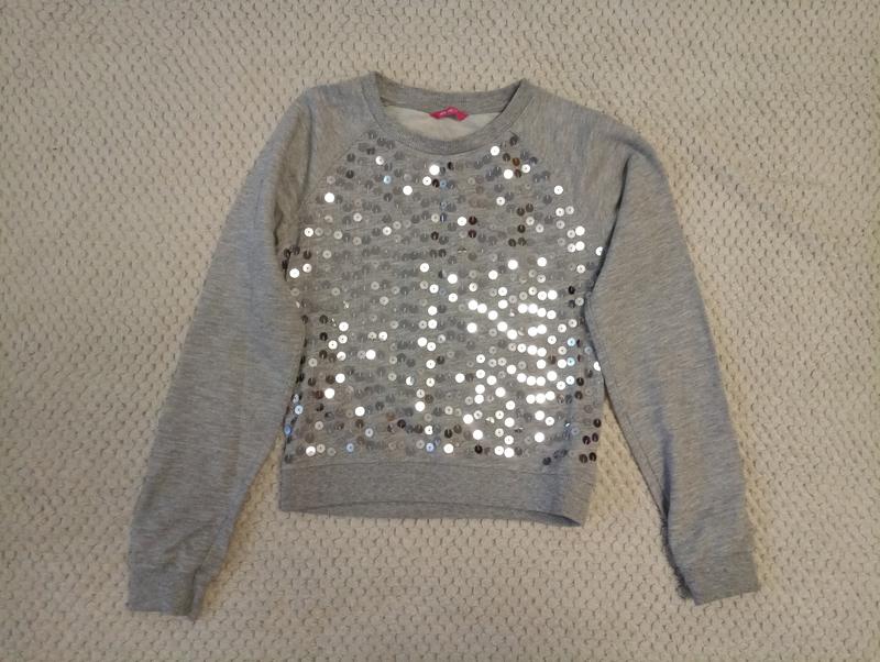 свитшот реглан с паетками HEMA 146-152 длина 45см ширина подмышками 35см длина рукава от горловины 62см