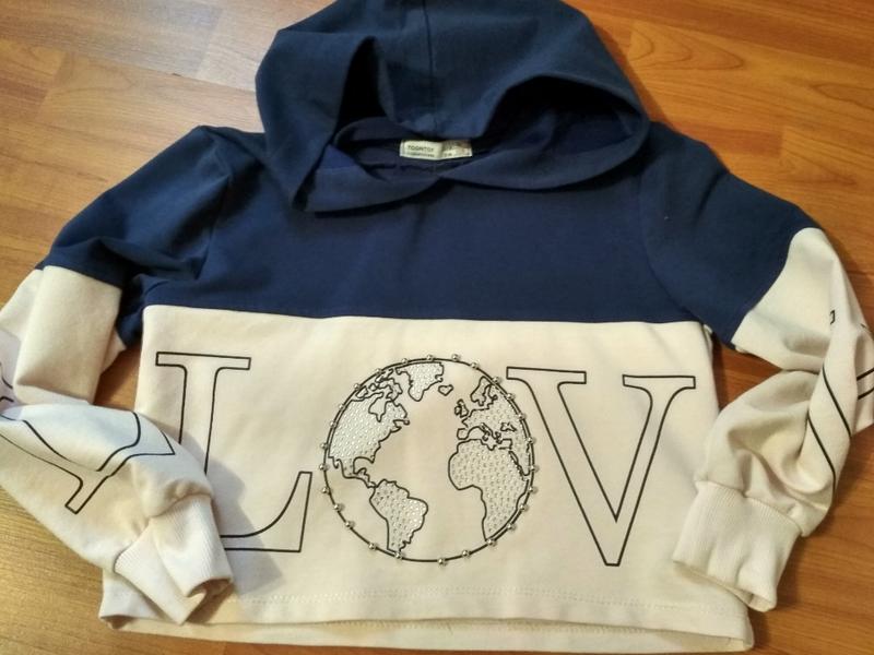 Укорочена кофта на дівчинку 6-8 р. Без дефектів. Вверх - синій, низ- ніжно рожевий