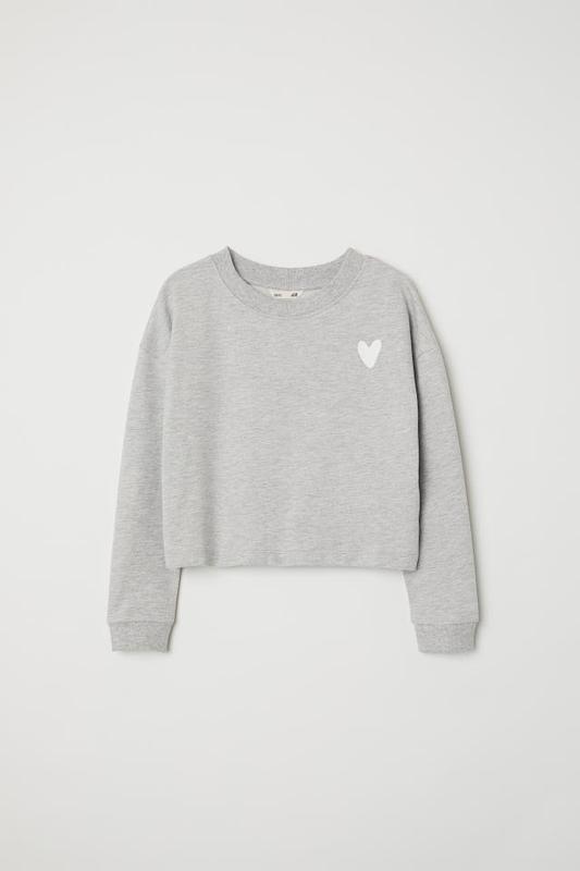 Короткий свитшот H&M (Германия) Отличное качество по отличной цене! Короткий байковый свитшот с длинными рукавами. Трикотажная резинка по горловине и снизу на рукавах. Состав Хлопок 95%, Вискоза 5% Цвет: серый меланж. Размеры в наличии: 170. Цена окончательная!