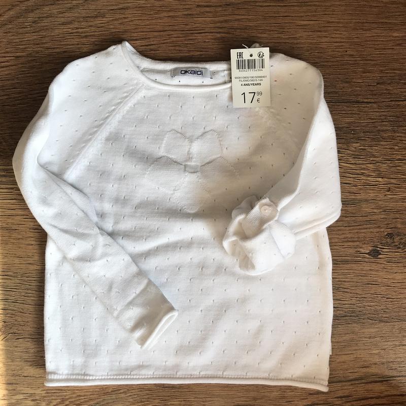 Дуже якісна брендовий кофточка на дівчинку. Рукав можна робити 3/4. Можна одягати на плаття і під штанці. Вживу дуже красива Рукав 40 від шиї Довжина 35 Пахви 30
