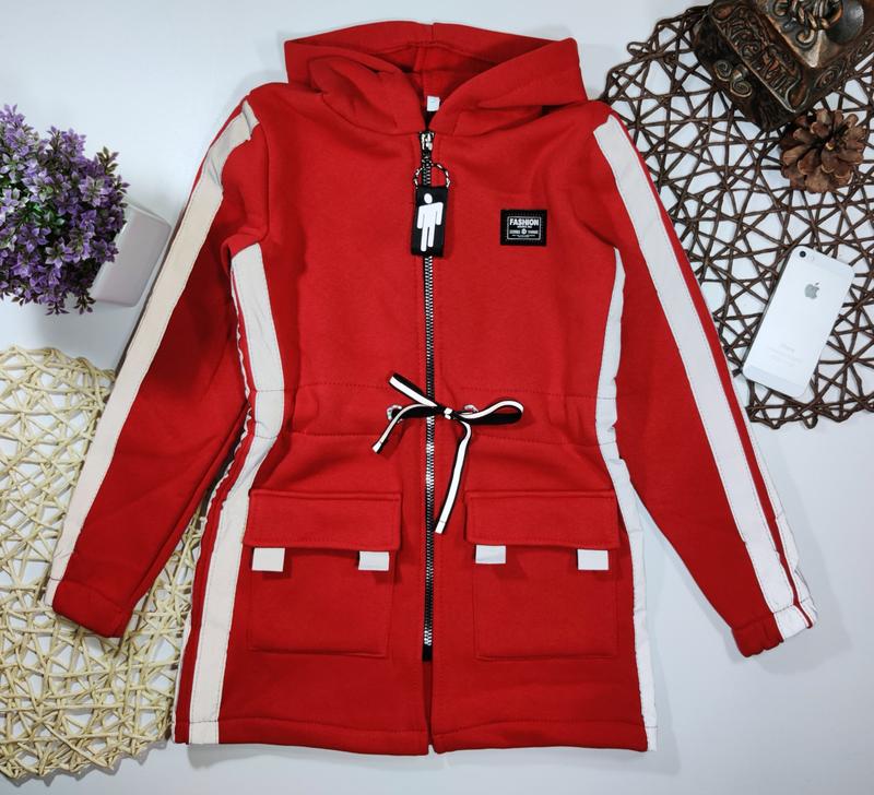 Крутой теплый кагдиган на молнии, в поясе шнурок(есть утяжка) 🧶с накладными карманами все элементы светоотражающие 🧶ткань трехнитка-флис цвет красный РЕКОМЕНДУЮ!!! размер/🧶длина/пог/рукав 140/🧶64/42/49-1шт 146/🧶65/44/52-1шт 152/🧶67/44/54-1шт