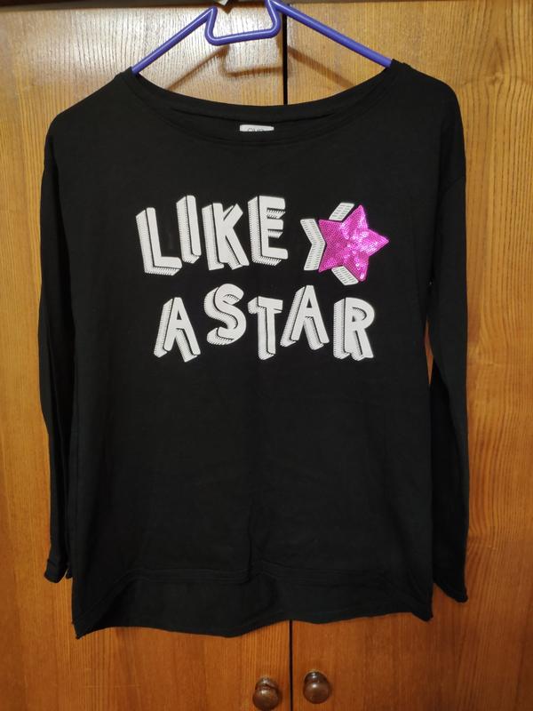 Черная кофта с надписью, звезда вышита паетками, 13-14 лет
