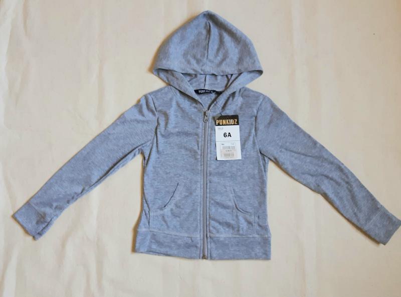 Оригинальная симпатичная кофточка худи с капюшоном и с вшитой иммитацией футболки французского бренда Punkidz на ребенка 6 лет ростом 116см. состав 60% хлопок, 40% полиэстер ЗАМЕРЫ длина от плеча 41 см, ширина 30 см, плечи 29 см, рукав 42см