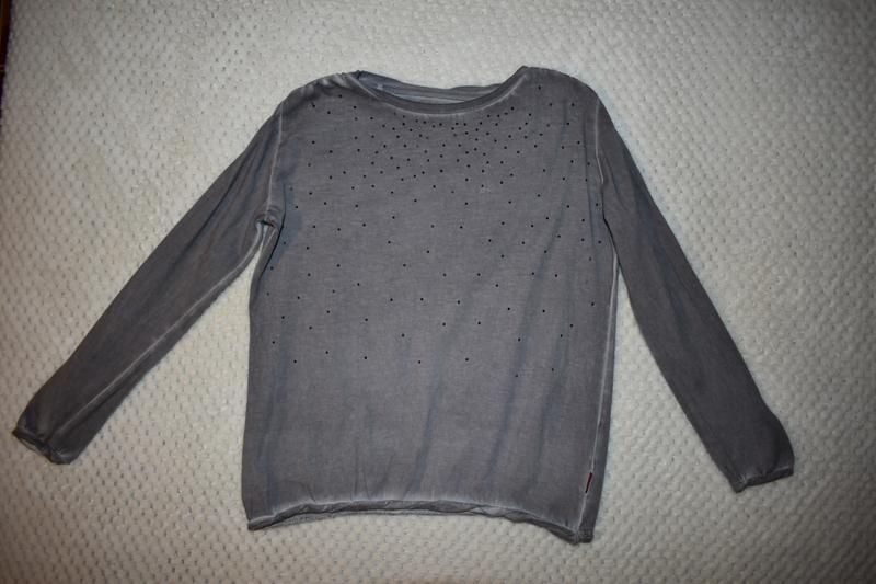 В идеальном состоянии, внизу и рукава резинка. Есть нюанс на рукаве,Передняя часть в камушки стразы.