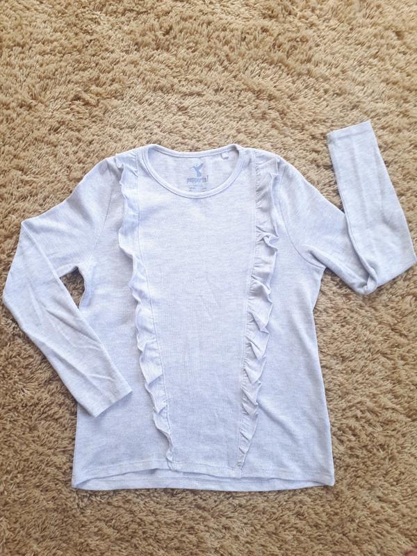 Кофточка з рюшами. Колір світло-сірий. Стан ідеальний. На вік 10-12 років, ріст 146-152см.