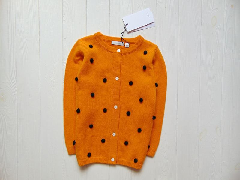 Новый яркий кардиган для девочки. Тёплый. Застёгивается пуговицами. Материал тянется. Шикарное качество. Name it (Дания). Доступен в размерах: 3-4 года, рост 100 см (продан); 5 лет, рост 110 см. Состояние: новый, с биркой и в оригинальной упаковке. Состав: 51% полиамид, 29% шерсть, 20% акрил. Замеры 3-4 года: длина 44 см, ПОГ 34 см, рукав от плеча 34 см, от горловины 41 см, по внутренней стороне 26 см, плечи 26 см. Материал тянется. Замеры 5 лет: длина 46 см, ПОГ 35 см, рукав от плеча 40 см, от горловины 47 см, по внутренней стороне 29 см, плечи 27 см. Материал тянется. Цена 350 грн.