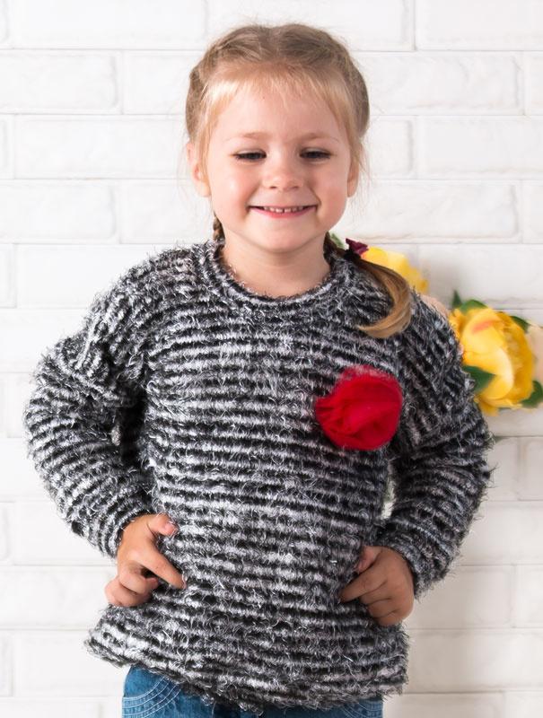 Детский джемпер для девочки Травка р.104,110 Джемпер для девочки Травка с отложным воротником. Модель свободного кроя, что сейчас в тренде современной моды. Линия плеча и низ изделия удлинённые. Аксессуар в виде бантика из сетки съёмный. Джемпер не даёт усадку. Производитель: Габби. Ткань: травка. 100% ПАН