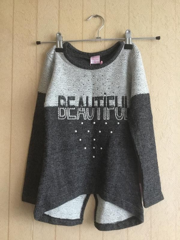 Чудова туніка для дівчинки, відмінної якості, виробництва Туреччини, ідеально підходить для осені, дуже м'яка і приємна до тіла, розмір на ріст 110-116, нова з біркою, ціна знижена. Супер туніка. Тканина трикотаж двунітка 100% бавовна.