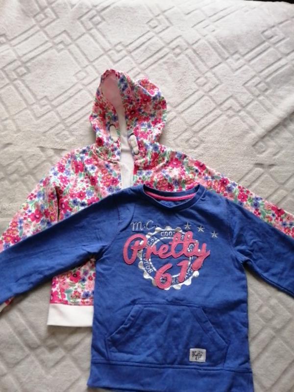 комплект из двух единиц, курточка новая, ни разу не одели, 100%коттон, утепленная, на капюшоне подкладка-хлопок. Длина кофты 42см, рукав 42 от шва
