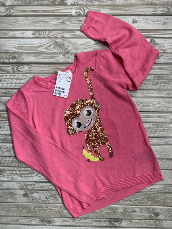 Тонкий свитерок- джемпер H&M с пайетками. Состав: 100% хлопок. В наличии размеры : 1,5-2 года (рост 92 см) и 6-8 лет (рост 122-128 см)