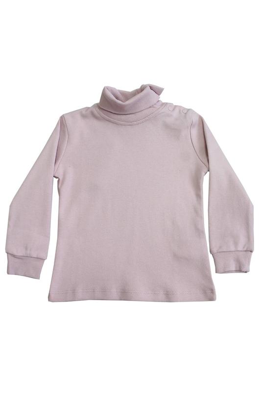 Водолазка прямого кроя. Имеет нежный приглушенный оттенок. Воротник подворачивается. На рукавах - манжеты. Декора нет. Поэтому этот гольф можно комбинировать с одеждой разных стилей. Он сшит из полностью натурального трикотажа высокой плотности. На левом плече есть две кнопки в тон основной ткани. На воротнике также пара того же цвета. Благодаря этому одевать водолазку очень удобно. Универсальный вариант для базового гардероба.
