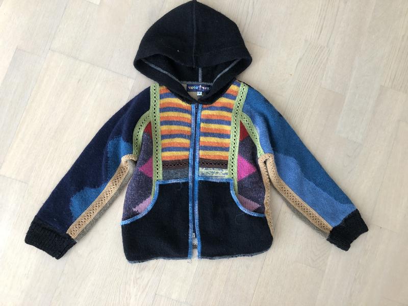 В отличном состоянии. Есть нюанс {на последнем фото}: один из кусков оказался вязаным из чистой шерсти, поэтому после стирки он один «сел». Это практически не заметно в носке. Других нюансов нет. Молния работает хорошо. Кофта куплена на рынке в Перу. Замеры есть на фото. Смотрите другие мои объявления, экономьте на доставке