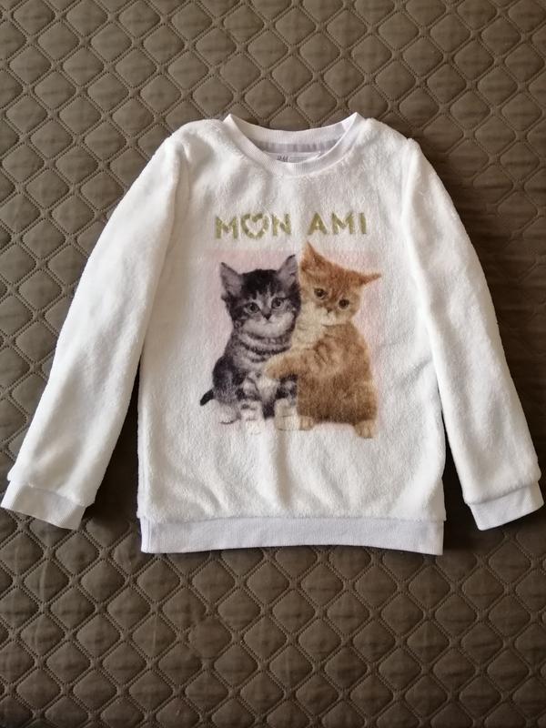 Тёплый и уютный флисовый свитшот с кошками. Удобно одевать. Замеры: ПОГ - 37 см Длина - 50 см Длина рукава - 45 см Плечо - 6 см Ширина манжета - 9 см Ширина низа - 34 см Длина бока - 31 см