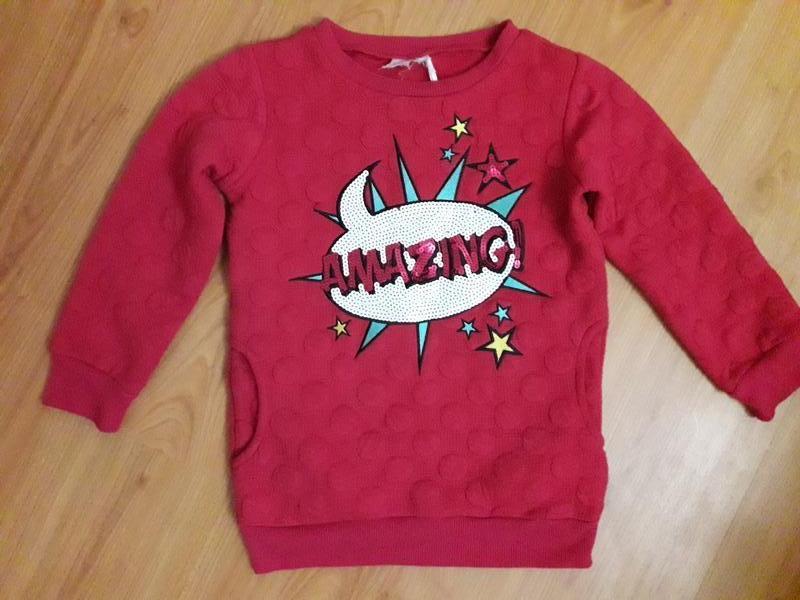 Модный свитшот девочке,яркий принт пайеток , на 5 лет ,фактурный ,плотный,кармашки,отличное состояние ,очень классный в реальности
