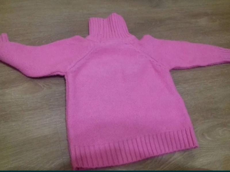 Теплый зимний свитер, ярко-розового цвета, под горло. В хорошем состоянии. Для ребенка от 2 до 5 лет. Рукава можно подкачивать. Длина рукава - 35 см, длина свитера - 40 см.