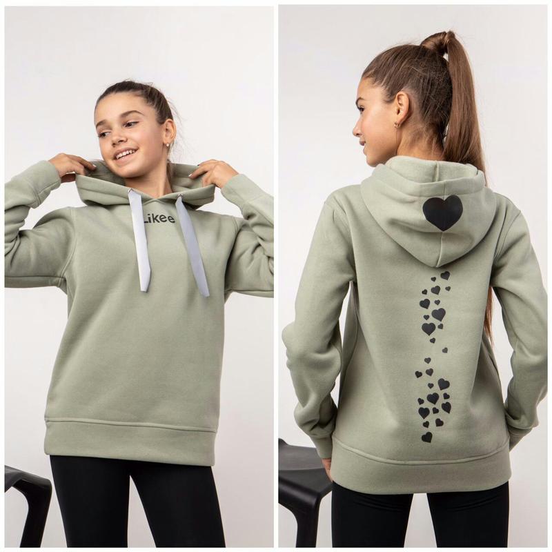 Худи Likee ⭐Ткань : тринитка на флисе ⭐Цвет: темная мята ⭐Дополнительно: светоотражающий накат ⭐Производитель Украина р.146- длина от плеча 53 см/ ПОГ 40 см/ рукав 50 см-2шт р.152- длина от плеча 55 см/ ПОГ 42 см/ рукав 52 см-1шт р.158- длина от плеча 57 см/ ПОГ 44 см/ рукав 56 см-1шт р.164- длина от плеча 59 см/ ПОГ 44 см/ рукав 57 см-2шт