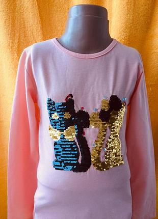 Кофточка для девочки с котиками.. и пайетками. Мягкий трикотаж, очень комфортный Размеры 86-92, Ширина груди 26см , рукав 35см , длина 37см. . Размер 122,-128. Ширина груди 30см , рукав 44см , длина 47см.