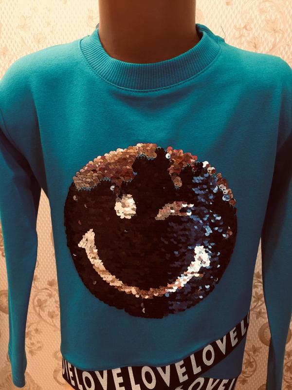 Модная кофточка для девочки с пайетками .. Цвет очень красивый морская волна . Камера не передает красоту морского изумрудного цвета Состав 95 % соттон 5% эластан... Размер 128. Ширина груди 35см рукав 42см длина по спине 61см Впереди модные перемычки.